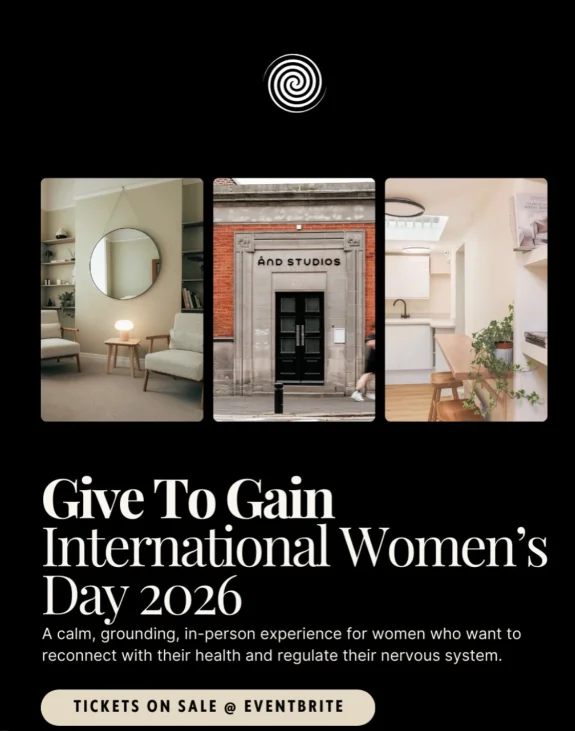 Our first event at the hub is happening and we are SO excited!We are celebrating International Women's Day with an event for you ladies!Give to Gain is an intimate, in-person experience designed to help women pause, regulate and reconnect to their health as the foundation of their energy, confidence and future self.
